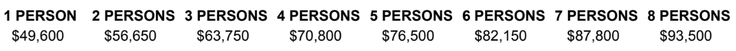 Income guidelines for applicants living in Chemung County for 2025 – 80% AMI