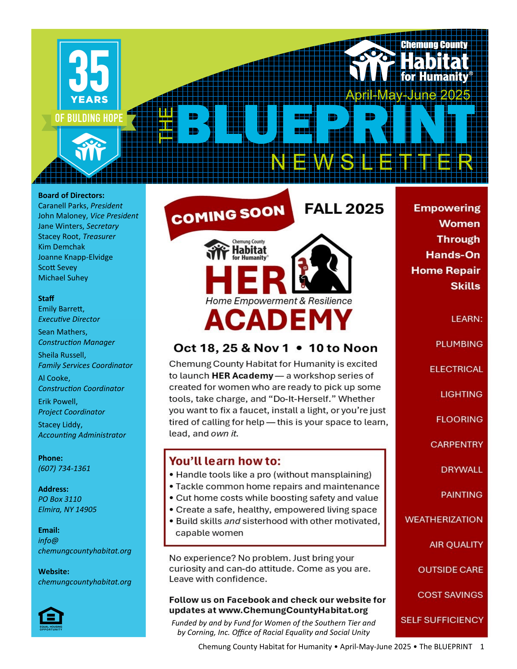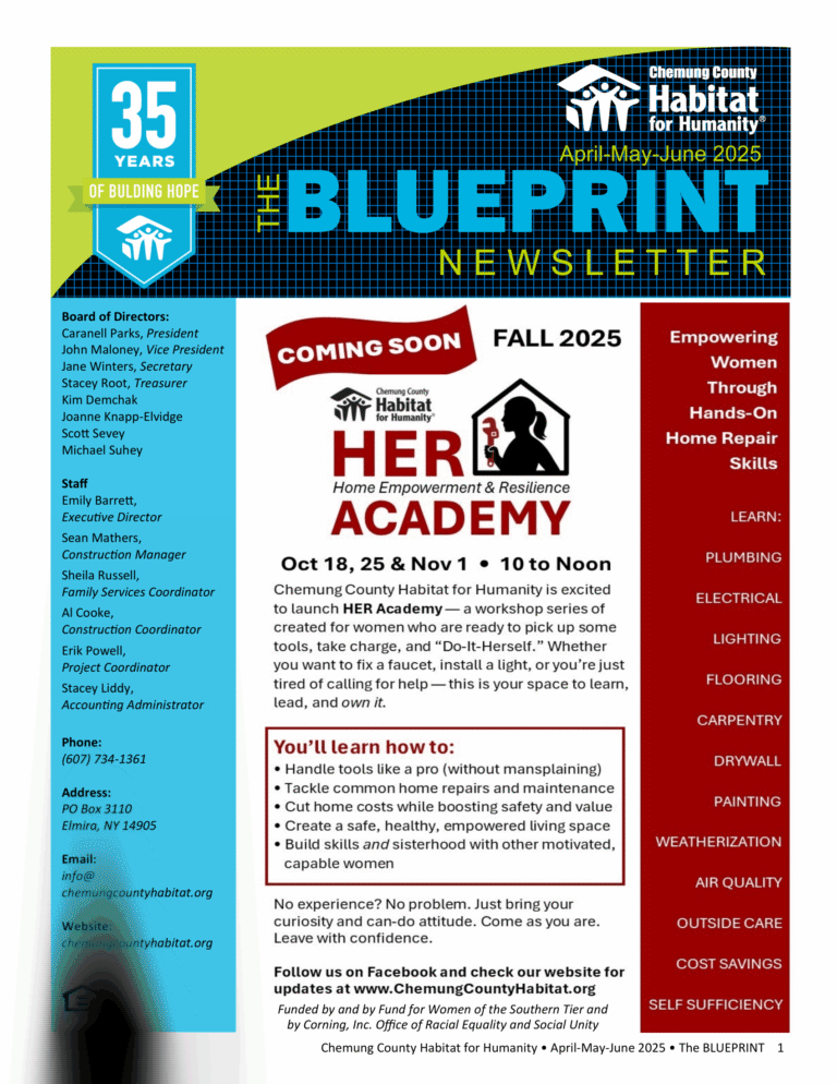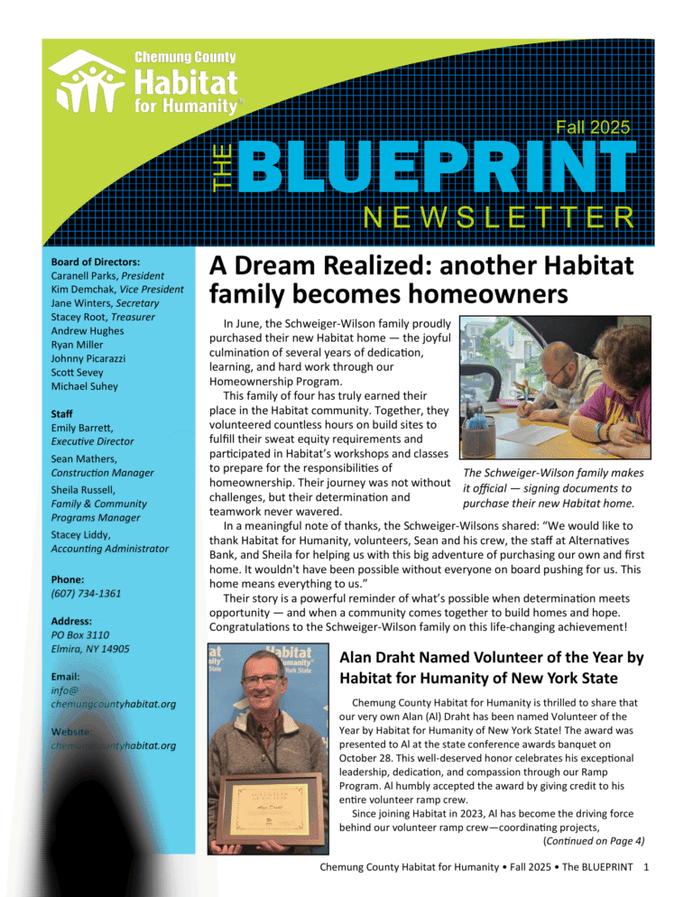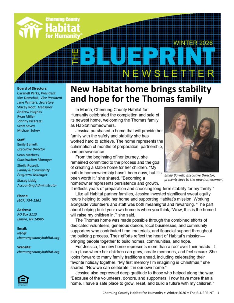 Keep up with all the latest news, events and volunteer opportunities with Chemung County Habitat